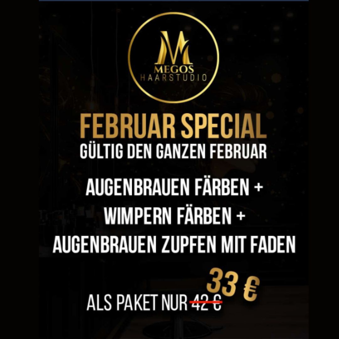 Bei MEGOS Haarstudio gibt’s Augenbrauen färben, Wimpern färben & Augenbrauen zupfen mit Faden – zusammen für nur 33 €.